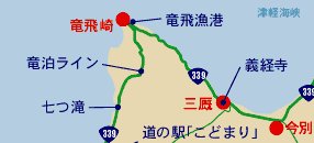 | 階段国道(龍飛岬) 国道339号線 龍飛崎灯台からバス停龍飛漁港までの総延長388.2m.の道は日本で唯一の階段状の国道です 間違って国道と記載されたものがそのまま残っています 階段の数は、361段 さて上りとなると暑いし361段の階段が目の前に立ちふさがり 息子に車で下(漁港)まで迎えに来てもらおうと言う事になった しかし何と携帯が"圏外”で通じない。仕方なくフーフー言いながらの階段国道での散策でしたq 皆さん下りる前には、約束しておきましょう「漁港に迎えに来てね」と・・・・・!! |