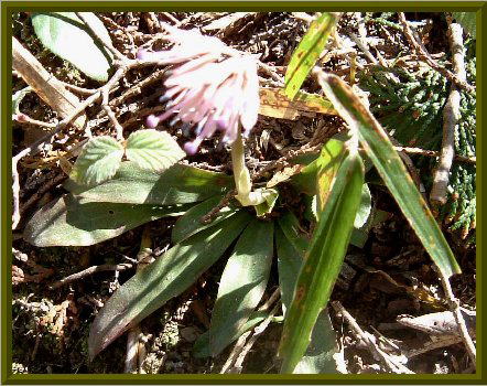 但馬の草花 4月〜5月 シヨウジョウバカマ 山のやや湿った林内や草地に自生する 多年草で茎の先に紅紫色の花が 集まるようにして咲く。 葉の先が地面に触れており、 そこから発芽する。 |