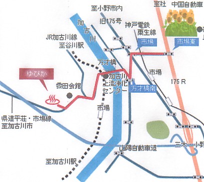 アクセス方法 ・山陽自動車道「三木小野I.C」より車で約10分 ・JR加古川線「市場駅」より 市内循環「らん ・神戸電鉄粟生線「小野駅」より 市内循環「らん ・無料駐車場完備 |